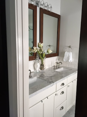 I am excited to show you the progress we have made on our bathrooms. In part of getting ready for the baby, I wanted to give his bathroom a new look. While we did that we decided to update some things in the other bathrooms. Take a look: